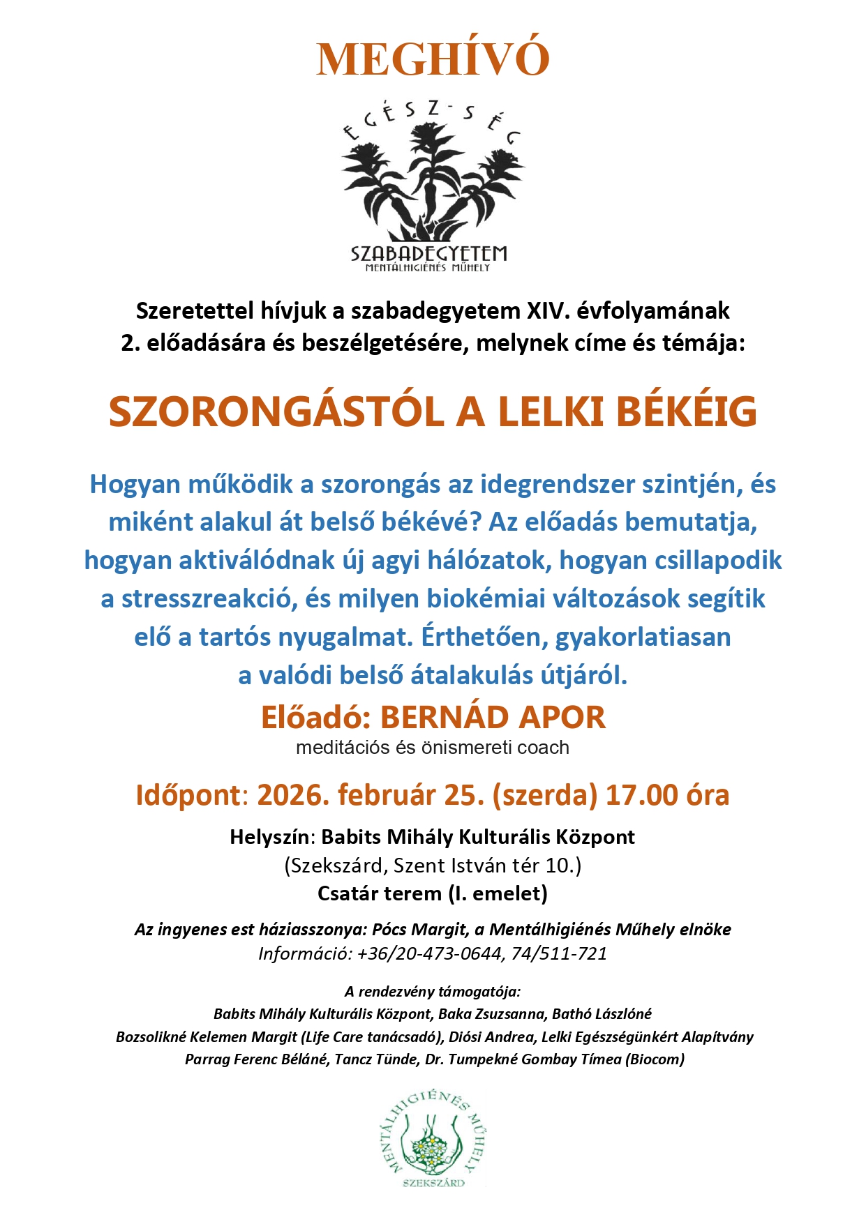 EGÉSZ-SÉG szabadegyetem XIV. évfolyam 2. előadás és beszélgetés