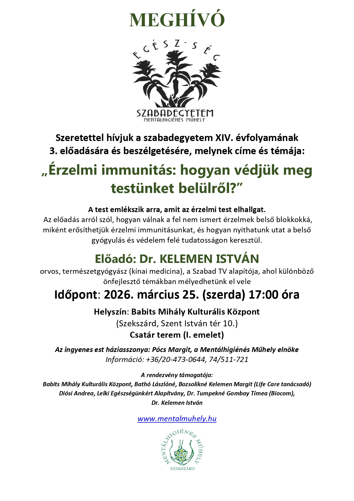 EGÉSZ-SÉG szabadegyetem XIV. évfolyam 3. előadás és beszélgetés