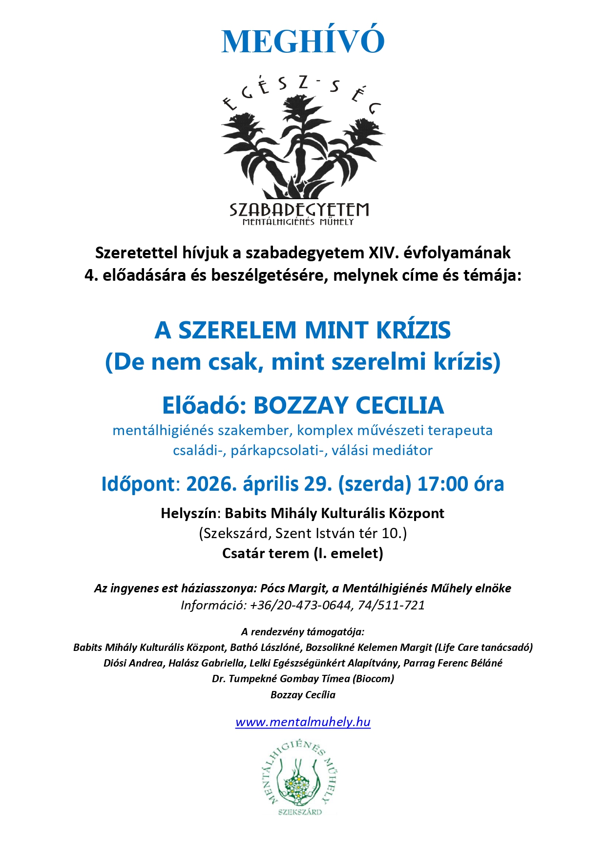EGÉSZ-SÉG szabadegyetem XIV. évfolyam 4. előadás és beszélgetés