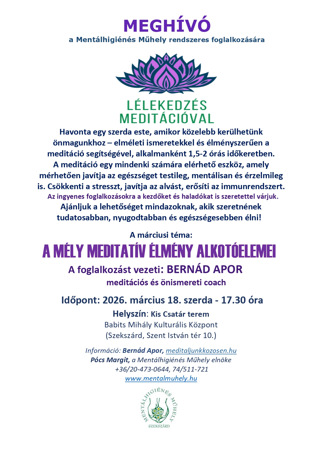 Előadó: BERNÁD APOR meditációs és önismereti coach